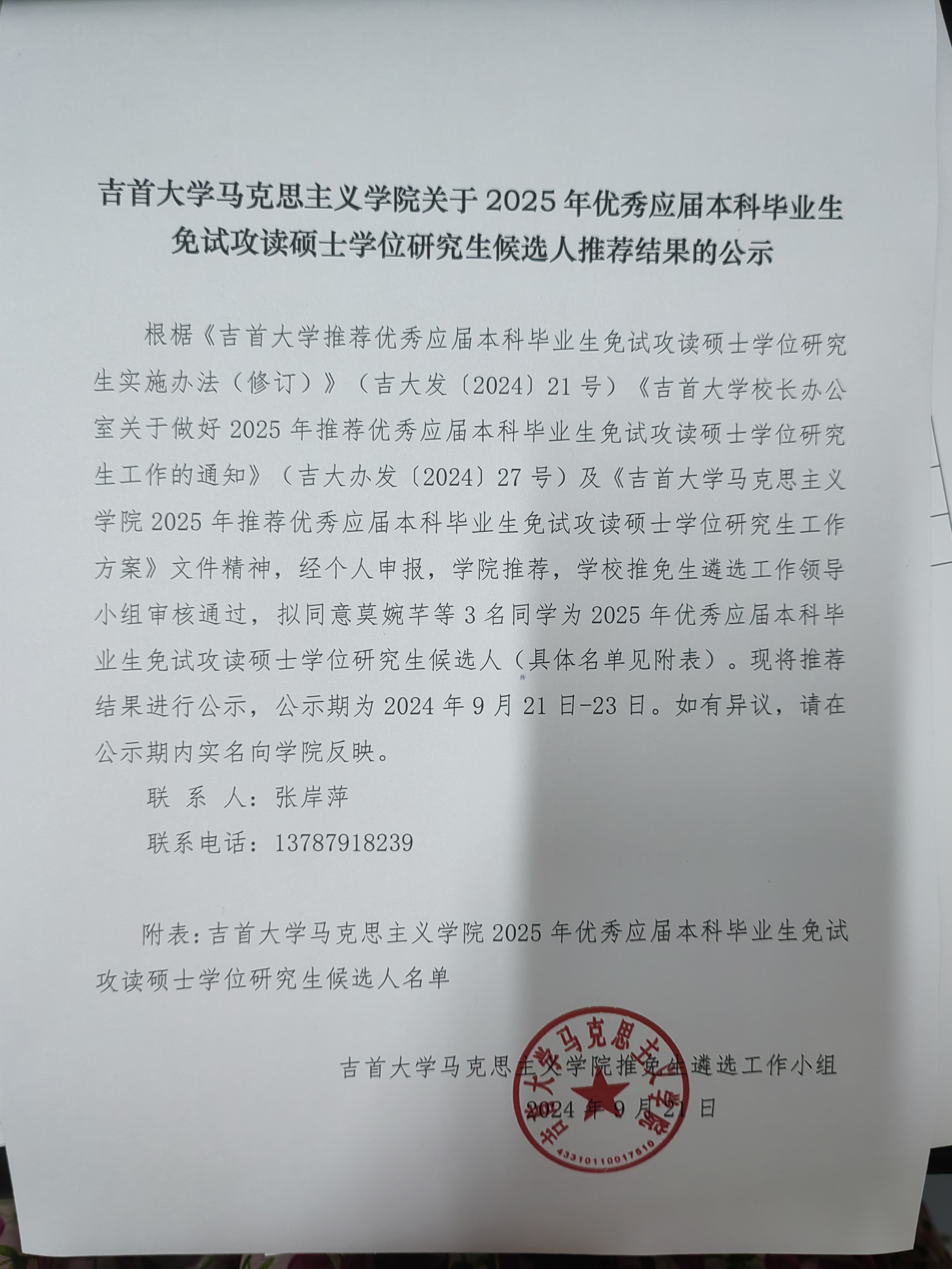 上一条:william威廉亚洲(中国)有限公司研究生2023-2024学年国家奖学金候选人公示 下一条:吉首大学william威廉亚洲(中国)有限公司2025年推荐优秀应届本科毕业生免试攻读硕士学位研究生工作方案