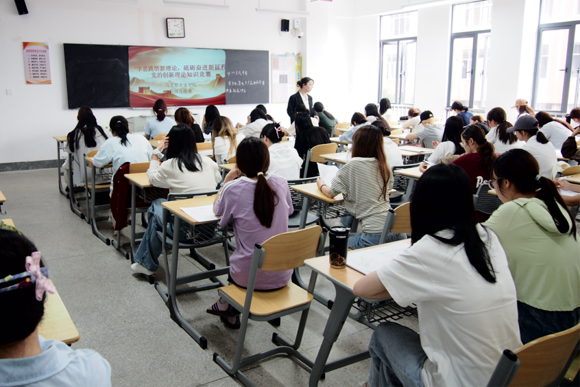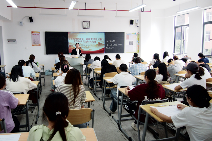 考场上,参赛同学专注审题、认真作答,从基础知识点的精准判断到理论要点的深度阐释,充分展现理论学习成果;工作人员全程严格监考,保障选拔公平。根据试卷评分,周依美、陈思宇、戴亚男、李娜、林卓京5位同学凭借优异成绩脱颖而出组成院队,将于9月29日参加校级选拔赛。后续学院将安排专项辅导,助力他们扎实备赛。