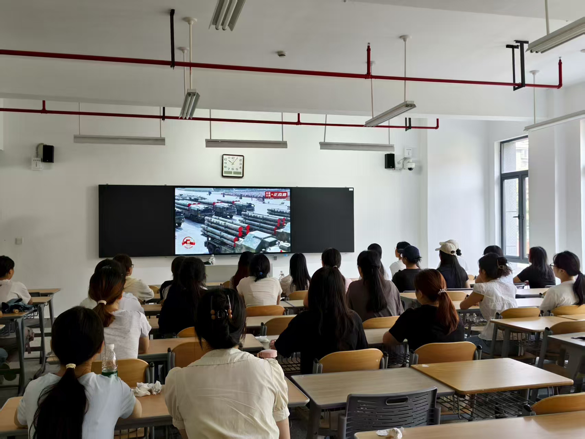 本次阅兵仪式在北京天安门广场隆重举行,是全面推进中国式现代化进入新征程的首次阅兵,是人民军队奋进建军百年的崭新亮相。在观看过程中,学生们神情专注,被阅兵仪式上的庄严氛围和受阅部队的飒爽英姿所深深感染。当联合军乐团以14个排面的队形演奏,寓意着14年抗战历史时,学生们更深刻地体会到了那段艰苦卓绝岁月所承载的厚重意义。