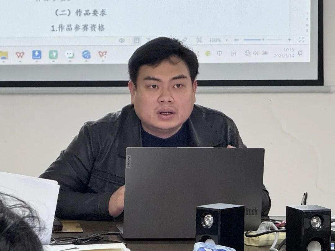 随后,副院长曾文发表重要讲话。他针对赛事明确提出,相关专业教师应积极投身到学生作品指导工作中。同时,他宣布学院后续将把学科竞赛类项目纳入政治传播创新工作室统一组织开展,旨在为同学们提供更为全面的服务与专业指导。他还表明,学院正筹备出台相关支持方案,力求助力参赛作品在校内外赛事中斩获佳绩。他鼓励同学们尽早熟悉各类学科竞赛,提前谋划、充分准备,以最佳状态迎接挑战。
