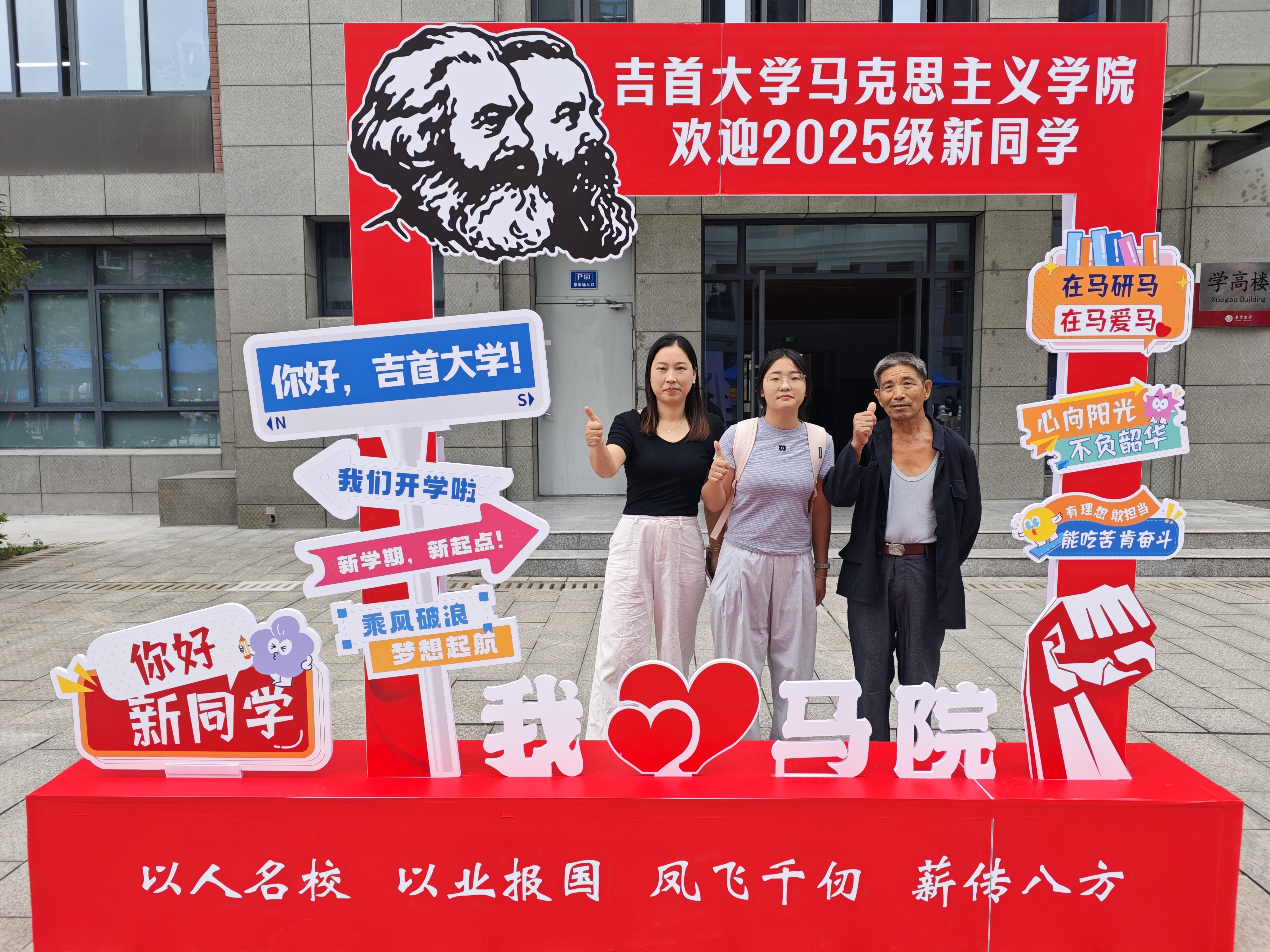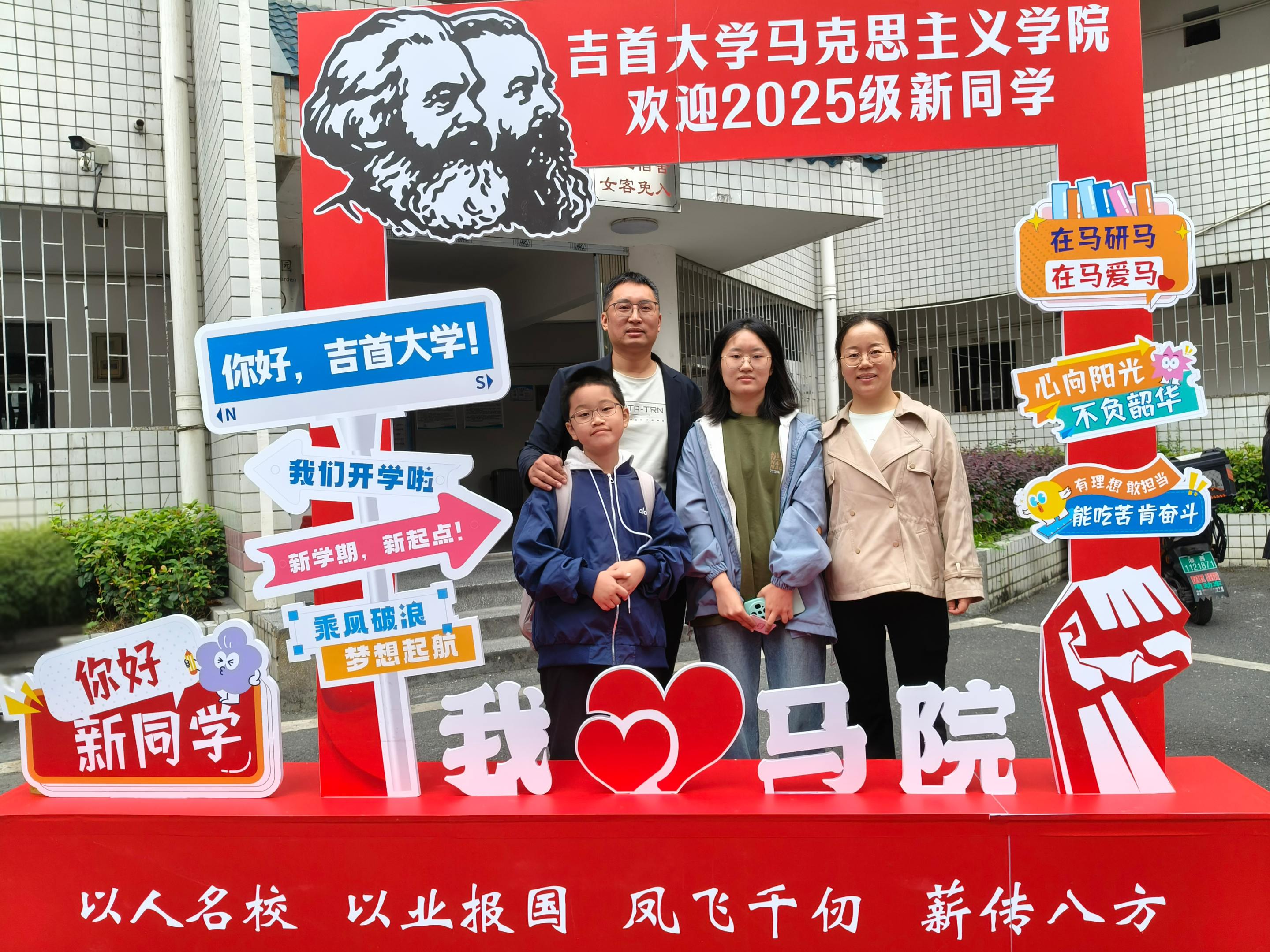 学院还精心设置了拍照打卡点,背景板上印着“我❤马院”的字样,搭配着富有学院特色的元素。许多新生在完成报到手续后,纷纷来到打卡点,与家人一起合影留念。大家摆出各种可爱的姿势,脸上洋溢着灿烂的笑容,用镜头记录下初入大学校园的美好瞬间,将这份喜悦与期待永久保存。