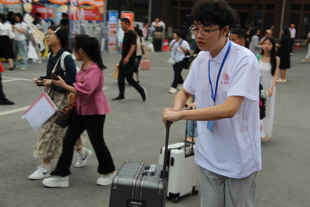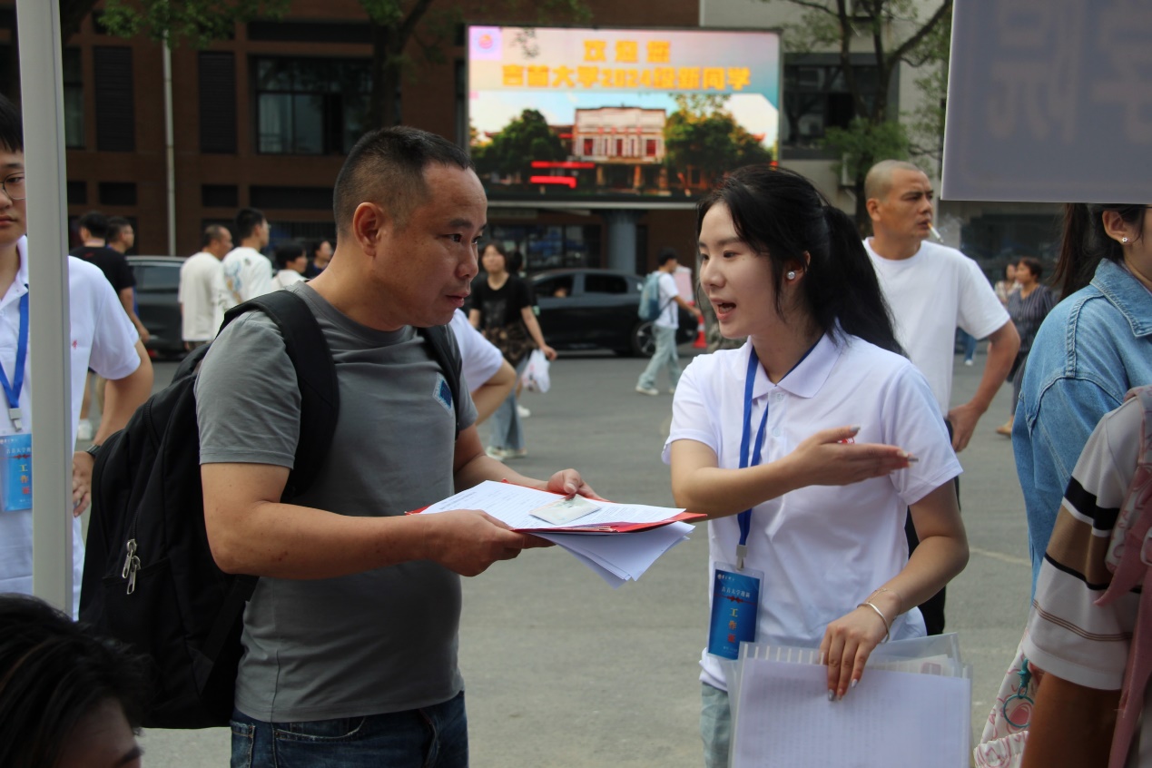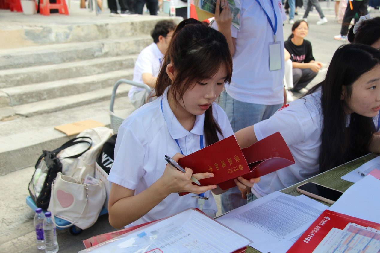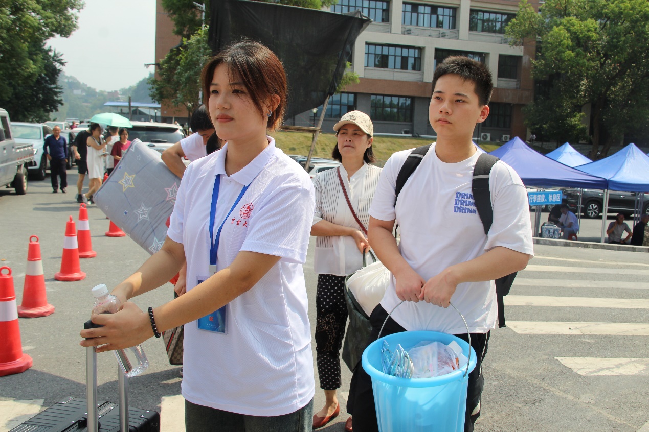 新生报到处,志愿者们耐心引导新生们完成报到手续,解答他们关于校园生活的各种疑问。宿舍楼下,志愿者们化身“搬运工”,帮助新生们将行李一件一件地搬入宿舍,让新生们感受到了学院的关怀与温暖。