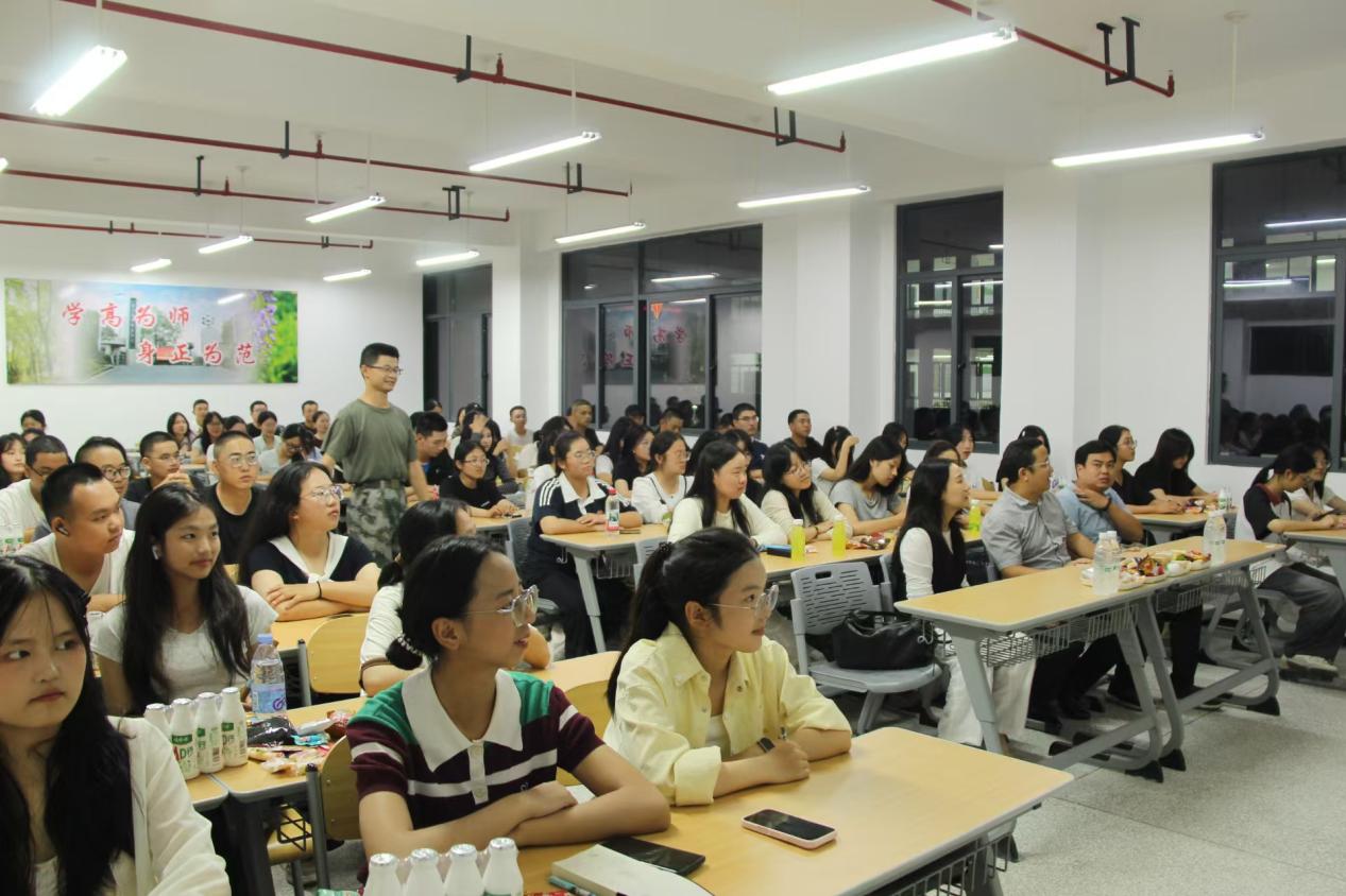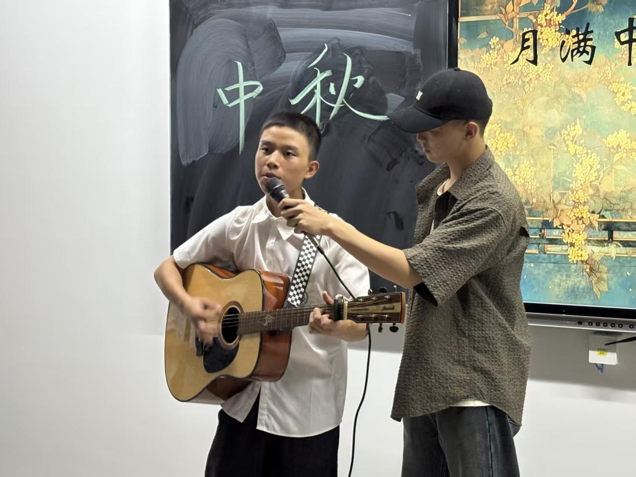庆生环节后,晚会正式进入高潮。新生们各展所长,带来了精心准备的表演:有活力满满的歌曲演唱,有治愈温暖的吉他弹唱,还有节奏明快的舞蹈串烧等,台下掌声与欢呼声一片。晚会表演间隙,学院精心准备了月饼、饮料及各类零食。新生们围坐一团,在品尝香甜美食的同时,欣赏精彩节目,相互交流军训期间的趣事与感受,现场欢声笑语不断,温馨氛围弥漫在整间教室。
