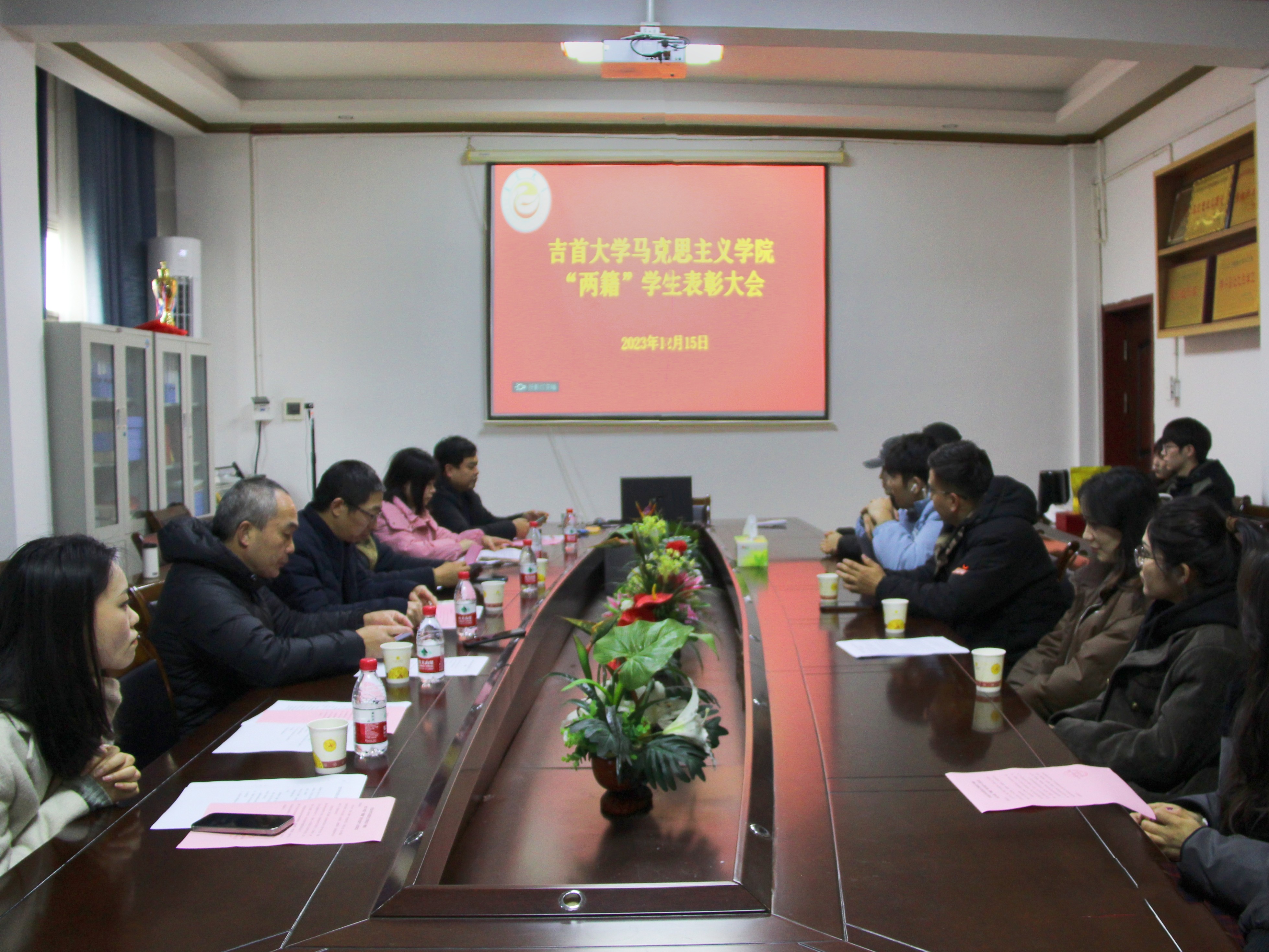 本网讯(通讯员 唐雅婷)2023年12月15日中午,吉首大学william威廉亚洲(中国)有限公司于院会议室召开“两籍”学生表彰大会。本次会议由辅导员袁梓翔主持,william威廉亚洲(中国)有限公司党委书记柴绪亮、副院长刘因灿、21级思政二班班主任胡志方、22级思政一班班主任杨文卓、22级思政二班班主任朱宸忻出席以及全院本科“两籍”学生参加。