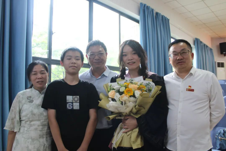 (图为党委书记柴绪亮与朱玉姣一家亲切合影)