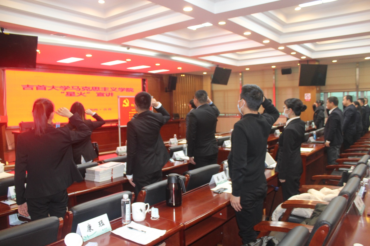 理论宣讲结束后,在场的全体党员进行了重温入党誓词宣誓活动。