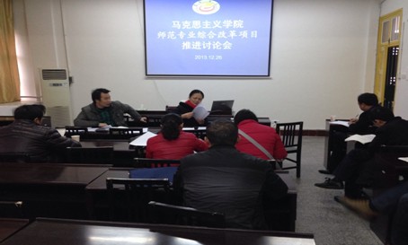 研讨会上,刘晗副处长主要就推进项目的建设质量做了详细的说明。他说,本次学校推进学校师范教育综合改革,马院按照学校要求承担教育心理学、教育学基础、教师道德与专业发展等十个项目的建设任务,是整个改革推进计划中的“大头”,是学院抓住改革机遇创佳绩的重大举措。