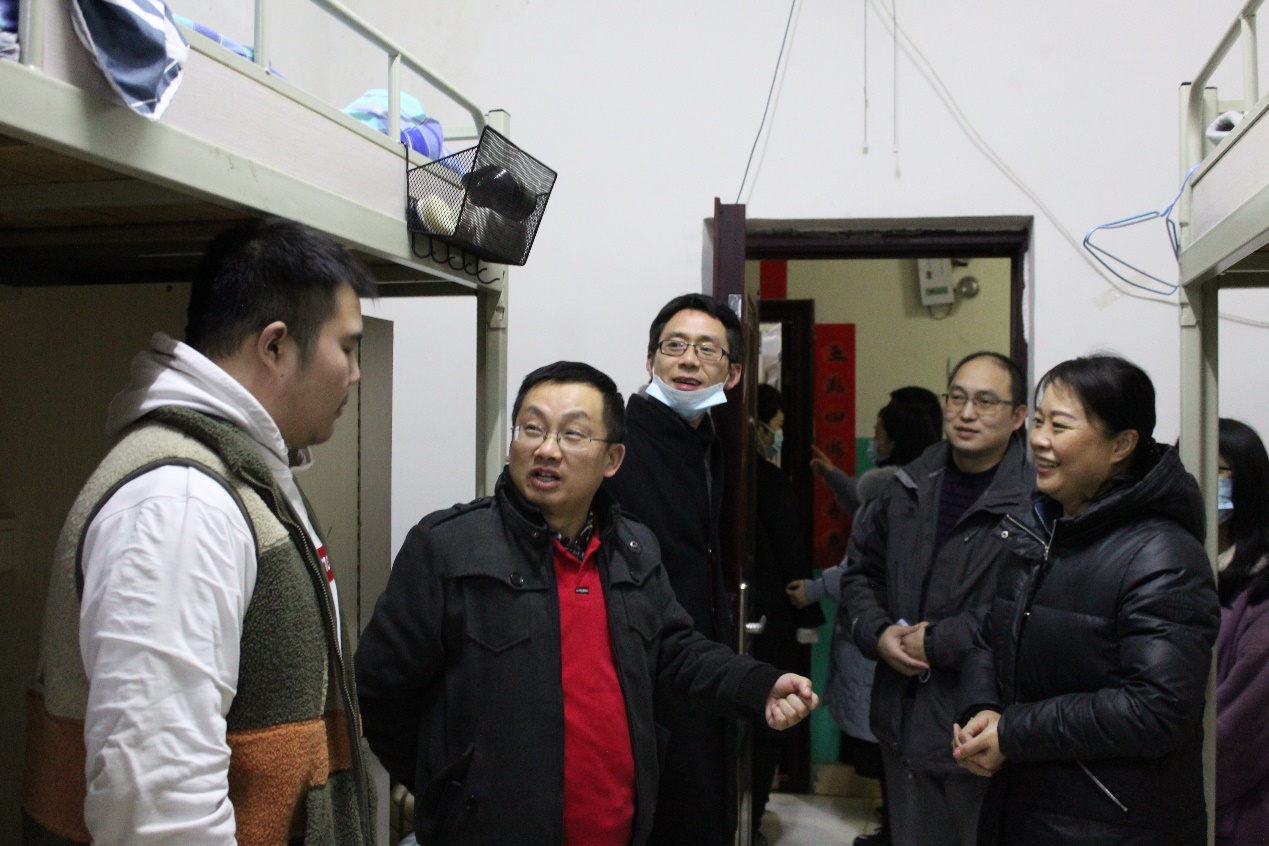 王艳副校长一行首先来到学生宿舍7栋,走访了学院的男生宿舍。思想政治教育专业出身的王艳副校长同学院的学生亲切地交谈,她仔细询问了大家在家过年的生活情况以及返校途中的点点滴滴,并叮嘱思政专业的学生保持较高的政治站位,率先做好学校疫情防控的表率,同时也要时刻保持高度的政治敏锐性,在今年建党100周年之际以实际行动做出优异表现,向党庆祝“生日”。