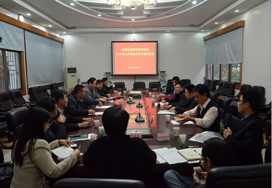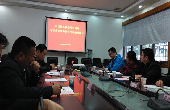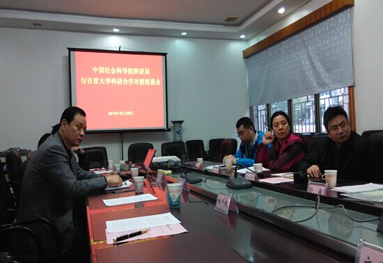 观看完学校宣传片《使命》后,社科院科研局陈文学局长在讲话中充分肯定了我校的办学宗旨及内涵,并就社科院科研局概况进行了介绍。他表示,吉首大学为社会培养了许多优秀人才,尤其在立足地方、服务社会方面表现突出,具有发展前景,希望能与吉首大学在社科领域开展多方合作,共同发展。孙晶、金朝霞、薛增朝、赵普先后就各处工作分工、与地方单位的合作先例等进行了说明,并一致认为双方可以寻找合作点,发挥各自优势,共同探索出科研院所与地方高校的合作之路。