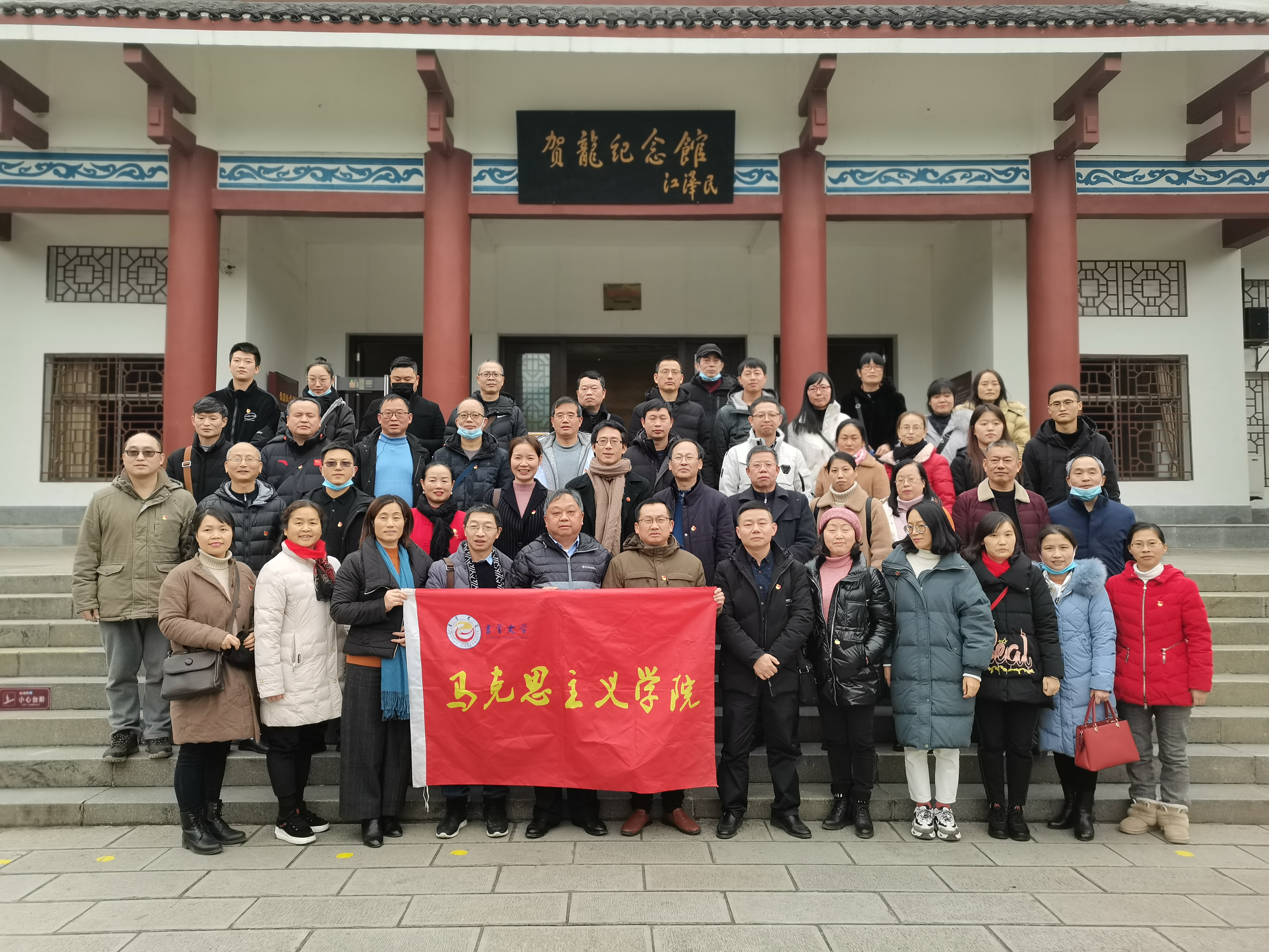 (图为学院全体党员在贺龙纪念馆前合影留念)