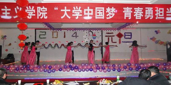 2013年12月27日晚,为喜迎2014新年的到来,丰富学生的文娱生活,我院在团委活动中心举行了题为“大学中国梦・青春勇担当”的元旦晚会,此次晚会我院全体老师连同张家界校区的老师和同学们齐聚一堂,共同迎接2014新年的到来。