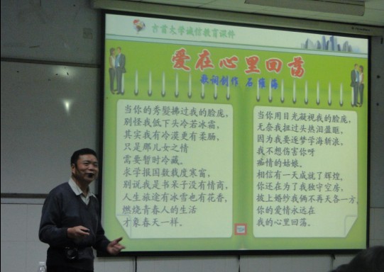 石维海老师从诚信是一个人立人处事的基本原则、诚信是社会主义的核心价值观、大学生诚信规范和要求等三个方面对诚信内涵和要求进行了深刻、生动地讲解。讲座中石老师还演唱了自己编写的歌曲《爱在心里回荡》,并获得现场一片掌声。