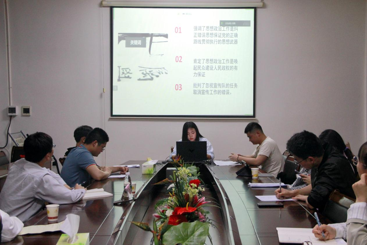 六位同学围绕“中国共产党思想政治教育工作史中几个关键点研究”这一主题,结合自身兴趣与研究从不同方面进行了分享汇报。