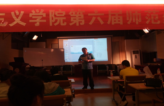 我院本次师范生技能大赛之讲课和即兴演讲的决赛有2014级和2013级共十位选手。由刘继富、孙忠良两位老师应邀担任评委。主持人王湘平。本次比赛分为两部分即兴演讲和片段教学,每位选手的总用时不得超过20分钟。主持人介绍本次比赛的流程规则后,十位选手按抽签顺序上台演讲和讲课。