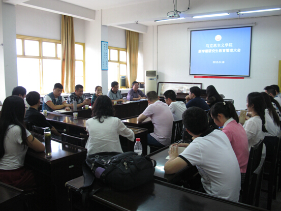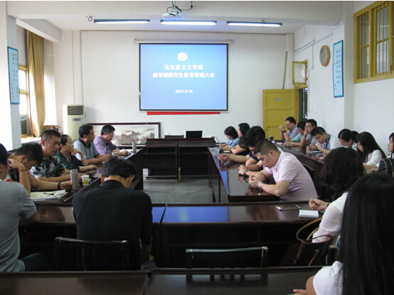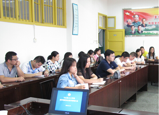 廖院长最后对导师工作也提出了具体要求,强调进一步明确导师职责,提高研究生的培养质量。一是本学期承担的研究生课程教学一定做到按时、认真和规范;认真做好学生考勤,遵守课堂规章制度。随便调停课的安教学事故处理;二是请导师们认真准备2014级同学的论文开题,加强对研究生的督促,多与学生交流、讨论。特别注意研究生选题要有“马味”;三是加强2013级研究生论文写作的督促,了解学生论文的进度、各方面的情况,确保指导的学生论文过关;四是现在起对导师进行全程考核,包括课程教学、必要的会议、学生的指导、学生的课题、学生的论文、学术活动等等,真正把导师负责制落到实处。五是高标准严要求,一切工作置于2018年的学位点的评估要求,严格要求自己,教书育人,为人师表。关心研究生在德、智、体各方面的发展,了解和掌握研究生的思想动态,关心研究生的成长,关心他们的生活,帮助他们解决思想、学习、生活中遇到的困难和问题;对研究生进行就业指导,引导他们树立正确的就业观,并在就业时给予推荐、介绍,提供力所能及的帮助。