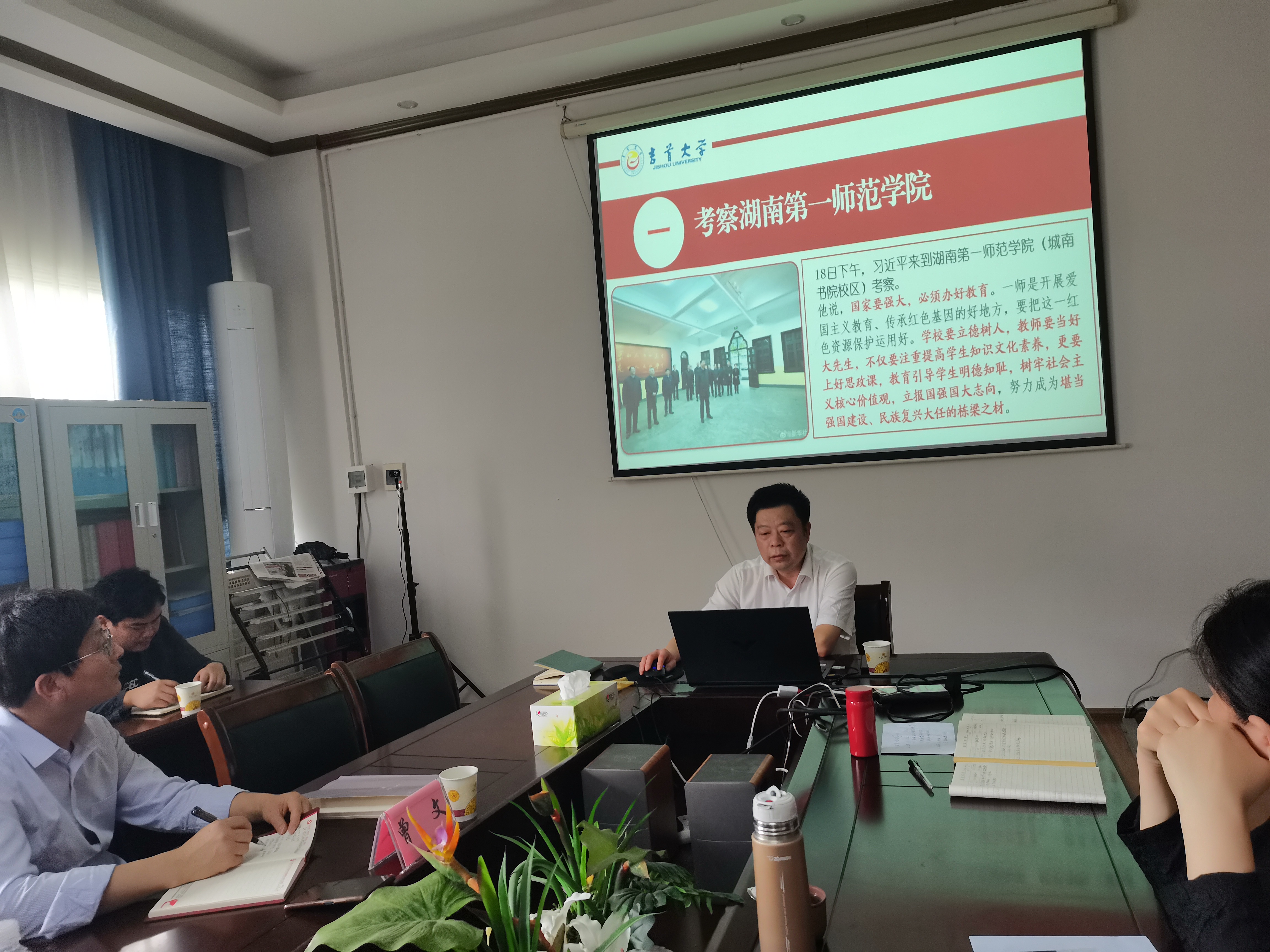4月16日下午,学院召开全体教职工大会。校纪委书记、代理院长刘启定传达学习习近平总书记考察湖南重要讲话精神,院党委书记柴绪亮传达学校党委党纪学习教育启动会精神,并就学院的党纪学习教育进行初步部署安排。其他分管院领导就教学、科研、学生等方面工作进行布置。