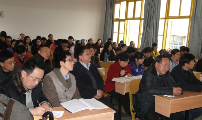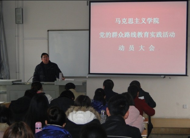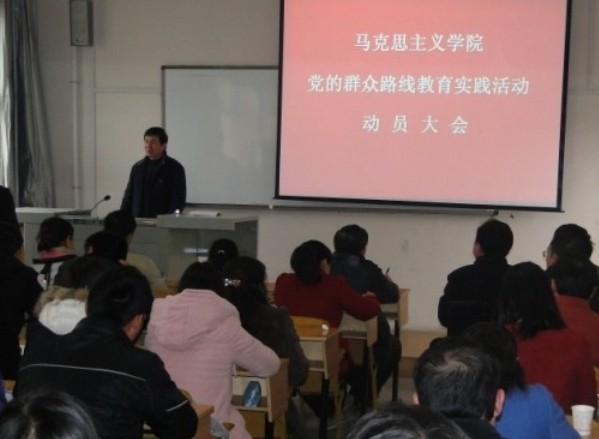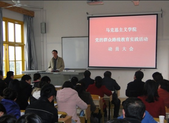 3月11日下午,我院召开了党的群众路线教育实践活动动员大会,全面启动党的群众路线教育实践活动。校党委书记游俊、校教育实践活动办公室成员龙斌、孔凡虎、田小凤出席大会。学院党政领导班子成员和教师党员,学院高级职称教师,教工代表以及学生支部委员、学生党员代表共64人参加会议。院党总支书记朱廷岚作动员报告,对我院开展教育实践活动作了全面动员和整体部署。会议由院长廖胜刚主持。