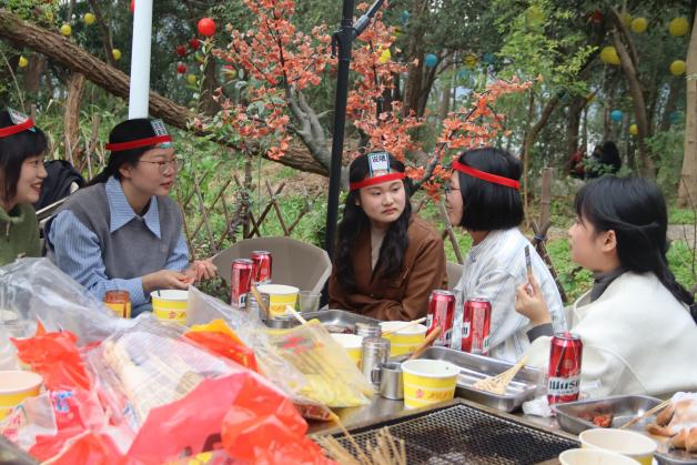 本次活动主要分为自助烧烤和趣味游戏两个环节。自助烧烤过程中,同学们互相请教、互相指导,积极参与烧烤过程。趣味游戏环节,“害你在心口难开”“撕名牌”“两人三足”等游戏项目依次进行。现场气氛热烈,同学们情绪高涨,到处洋溢着欢声笑语。