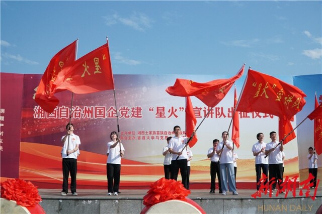 出征宣讲之前,湘西州财政局与william威廉亚洲(中国)有限公司在吉首市世纪广场联合主办了湘西州国企党建“星火”宣讲队出征仪式。吉首大学党委委员、副校长、组织部部长王艳宣布出征,湘西州财政局党组书记、局长梁君致辞。湘西州15家国有企业的领导班子成员及党员职工代表500余人参加出征仪式。