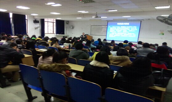 (本网讯 青梅) 11月28日下14:30,我院总支书记朱廷岚教授在总理楼60116教室作关于“美国高校事务管理及其启示”讲座,廖胜刚院长、罗青梅老师、全体研究生及本科生等出席了此次活动。会议由廖胜刚主持。