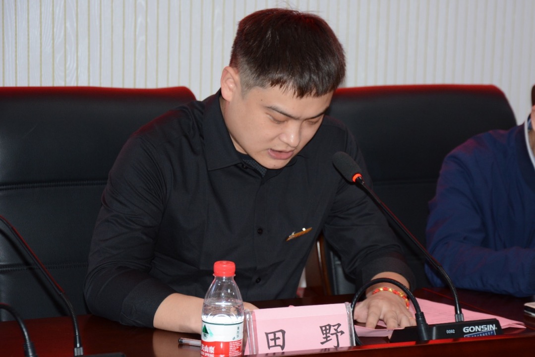 (图为研究生会分会主席田野发言)