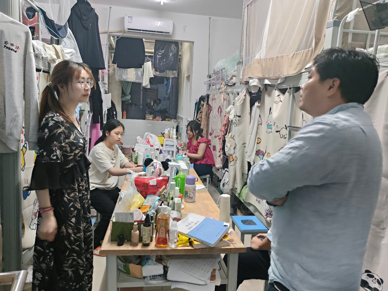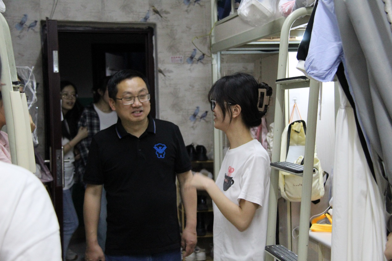 在下寝过程中,柴绪亮书记一行查看寝室饮水机等设备,与广大同学亲切交谈,提醒同学们提高安全防范意识,确保人身财产安全,告诫同学们注意五一假期的旅途安全,避免发生安全事故,同时嘱咐同学们要融洽相处,互相帮助,共同营造良好的学习和生活环境。