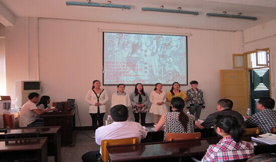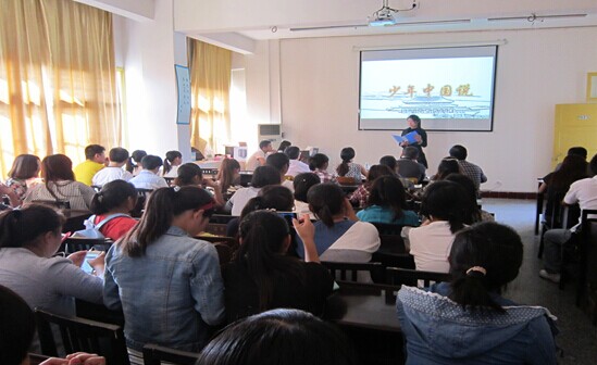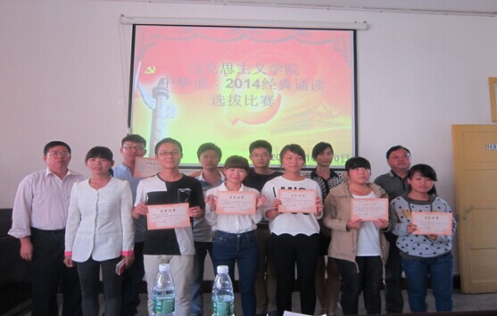 本网讯(刘鹦) 为培育和践行社会主义核心价值观,弘扬祖国优秀传统文化,2014年10月10日下午,我院思想政治教育专业同学学院在会议室举办“中华颂”诗歌朗诵比赛。出席本次活动的有朱廷岚书记、廖胜刚院长、李乐为、刘继富、罗青梅等老师及来自学院的十三支参赛队伍和其他观众同学。