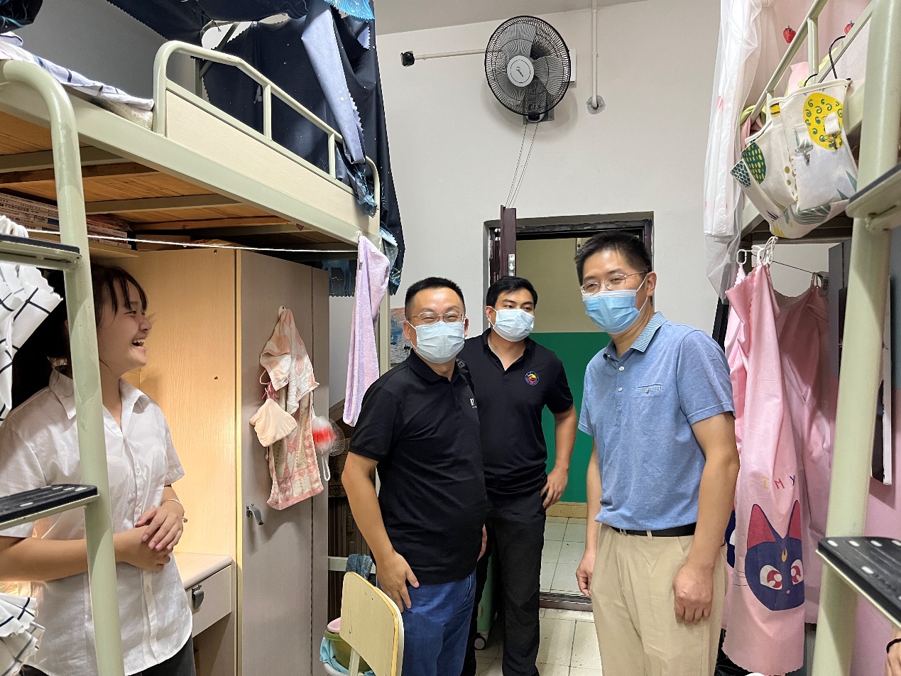 本网讯(通讯员 朱思瑾)为深入了解我院学生的宿舍生活和开学到校情况,9月4日晚上19:00,我院党委书记柴绪亮、新到任的党委副书记叶伏秋、辅导员袁梓翔以及19、20、21级各班班主任集体下寝室看望假期归来的学生。
