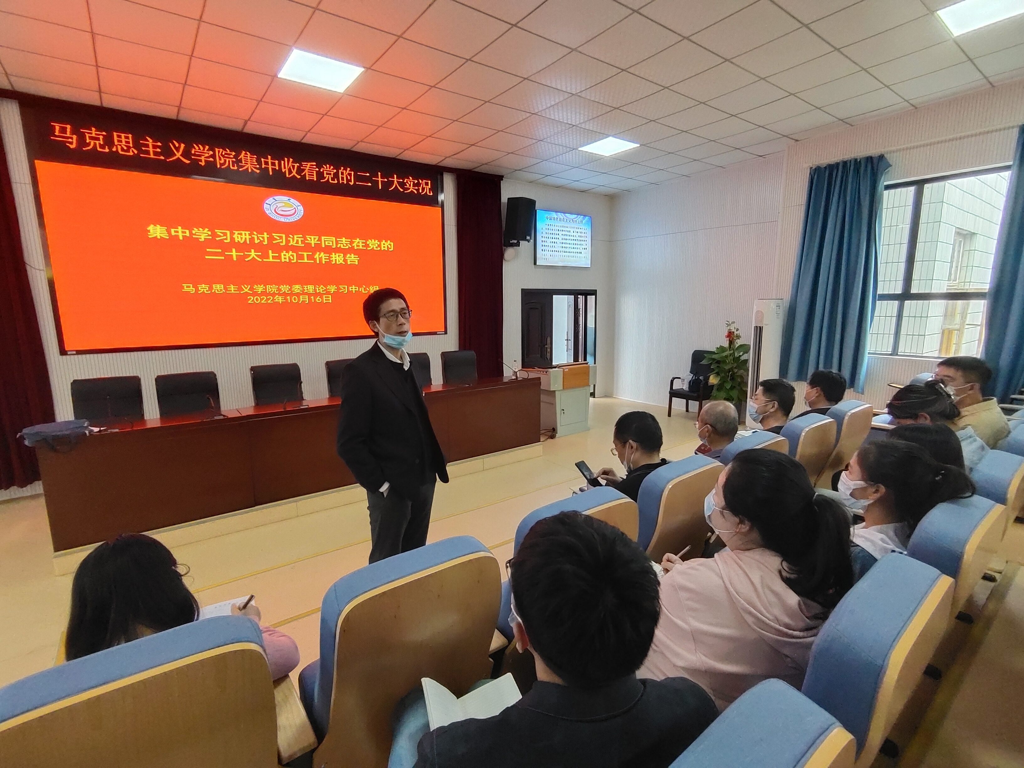 院长肖映胜对于马院师生如何开展党的二十大的学习、如何学习贯彻习近平同志所做的党的二十大工作报告,提出要做到学习、研究与宣讲相结合,做出马院特色。院党委书记柴绪亮要求学院各党支部、学生团支部开展形式多样的学习活动,将党的二十大工作报告融入教育教学,立即掀起学习宣传党的二十大精神的高潮。