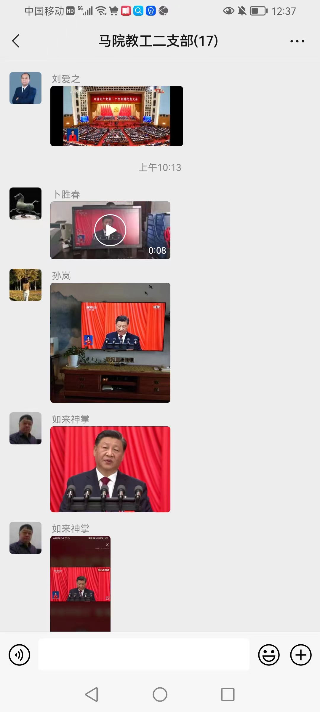 大家认为,本次大会是在我国进入全面建设社会主义现代化国家新征程的关键时刻召开的一次十分重要的大会,大会将科学谋划党和国家事业发展的战略目标和大政方针,事关党和国家事业继往开来,事关中国特色社会主义前途命运,事关中华民族伟大复兴,对团结和激励全国各族人民夺取中国特色社会主义建设新胜利具有十分重大的意义。与会人员一致高度肯定习近平同志所做的工作报告,分别从不同解读畅谈了自身对于工作报告有关内容的理解与感想;也纷纷表示要从报告中汲取智慧与力量,更加紧密联系实际,做好自己的本职工作,更加奋发有为,为学院建设发展做出应有的贡献。