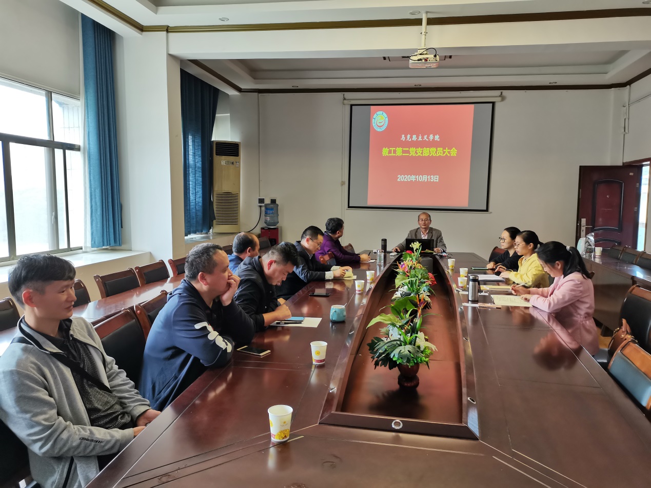 20201013日下午,学院教工第二党支部在院会议室召开党员大会。院长廖胜刚、党委副书记柴绪亮参加会议。