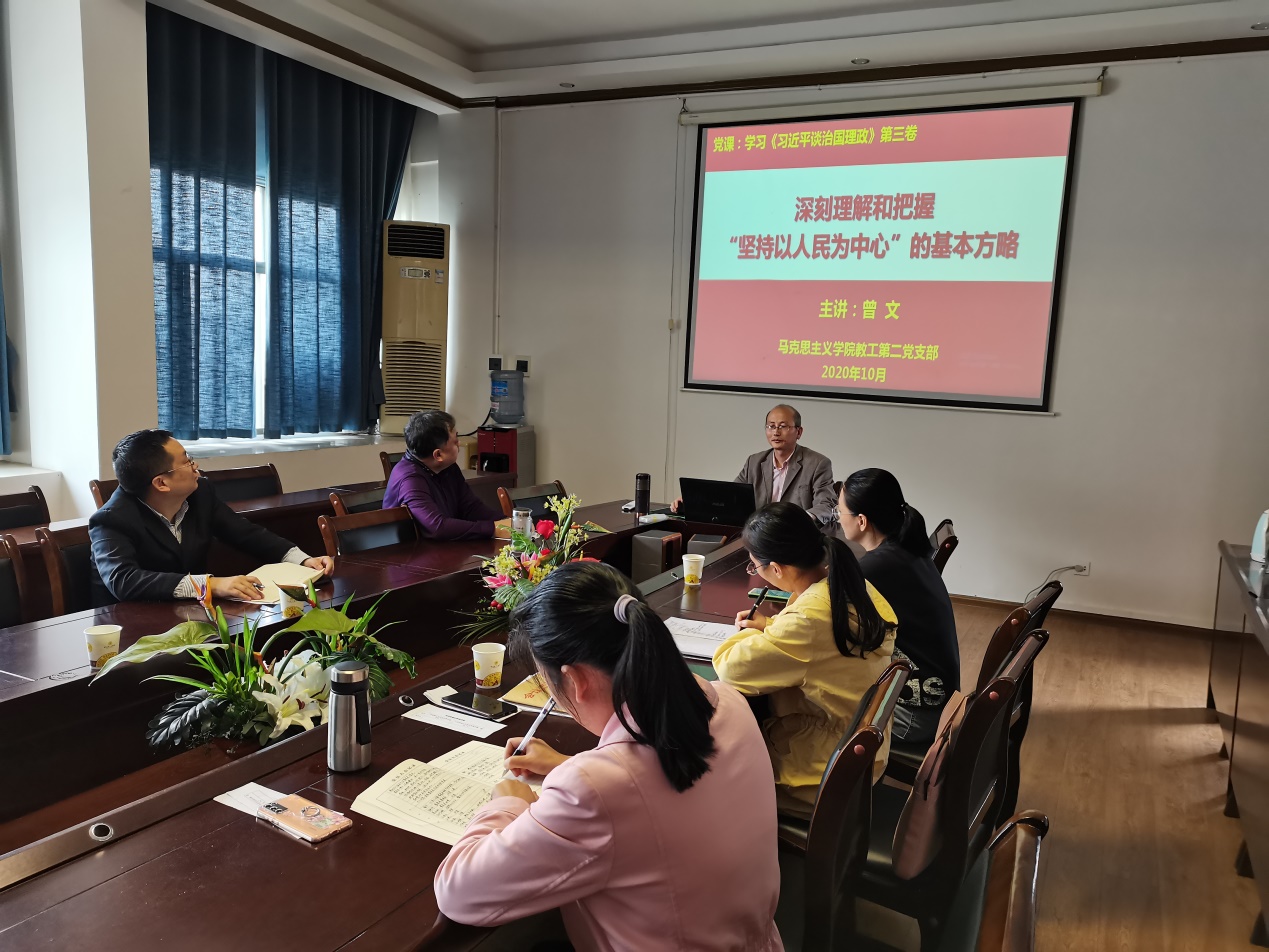 第二阶段党员们集中学习《习近平谈治国理政》第三卷,由支部书记曾文上党课。曾文以《深刻理解和把握“坚持以人民为中心”的基本方略》为题,从遵循“唯物史观”的必然选择、坚守“立党之本”的根本要求、秉持“心中有民”的政治信仰三个方面阐述了习近平新时代中国特色社会主义思想“坚持以人民为中心”的基本方略,讲课理论透彻,运用习语、案例生动,使大家深受教育和启发。