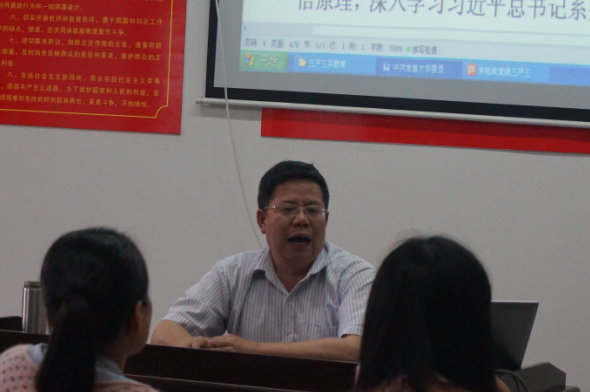 朱廷岚书记说,这次专题教育虽然只是在学校处级干部中开展,但作为一名党员需要了解这次专题教育,监督党员干部专题教育情况,也需要学习、践行“三严三实”,并将“三严三实”进课堂、进学生头脑。