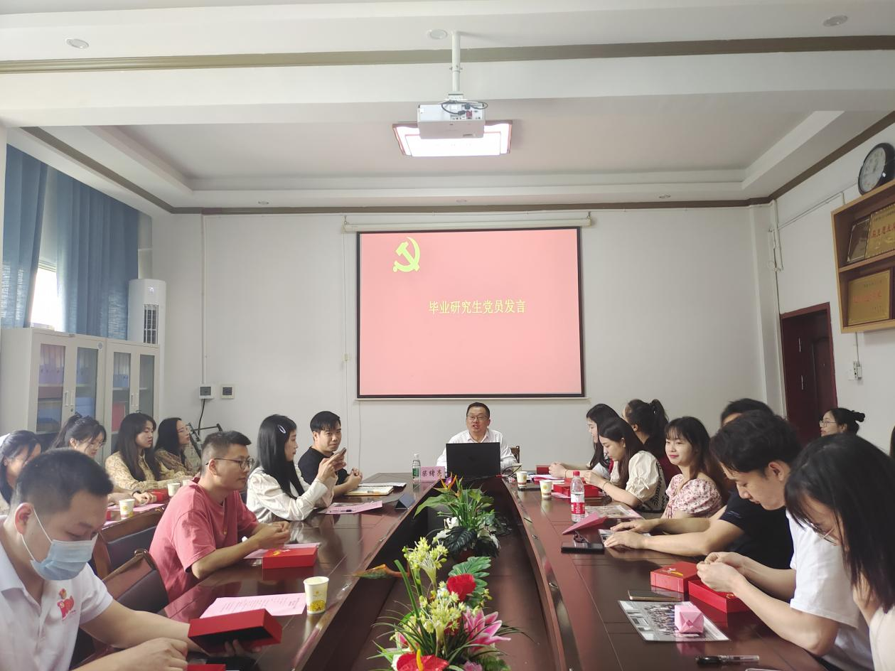 在毕业研究生党员临别发言环节,与会毕业研究生党员回顾了自己在吉首大学求学的点点滴滴,表达了对党组织和学院老师们悉心培养的感激之情,并就如何更好地建设学院研究生党支部、如何实现学院的更好发展提出了自己的意见和建议。毕业研究生党员刘程程表示,三年的党支部工作经历使自己成长了很多、收获了不少,在祝愿与会毕业研究生党员拥有美好前程的同时,也寄语非毕业研究生党员把握当下、努力学习、踏实工作,把支部建设得越来越好,争取获得省级样板党支部称号。紧接着,2021级、2022级研究生党员代表进行了发言,向各毕业研究生党员送上了自己真挚的祝福。