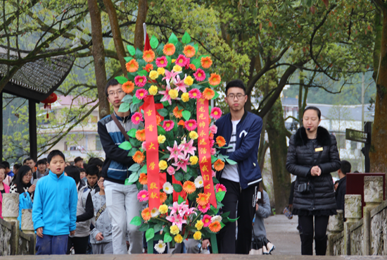 学生来到贺龙纪念馆后,首先举行了向贺龙铜像敬献花篮仪式。学生抬着花篮,缓缓步向贺龙铜像。献上花篮后,在纪念馆讲解员的主持下,全体师生向贺龙铜像三鞠躬。整个敬献花篮仪式,气氛庄严隆重,全体师生满怀崇敬之情,深情缅怀革命先烈的丰功伟绩,接受了一次红军长征精神的洗礼。敬献花篮仪式后,学生来到纪念馆参观考察。大家认真聆听讲解员对贺龙革命生涯的详细介绍,学生边听边记,并用手机拍照,留下珍贵的影像资料。之后,同学们前往刘家坪红二方面军长征出发地纪念馆参观考察。