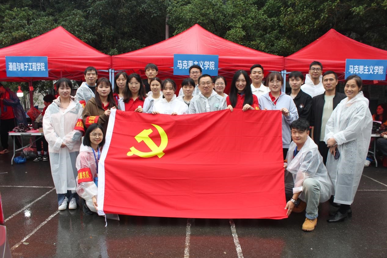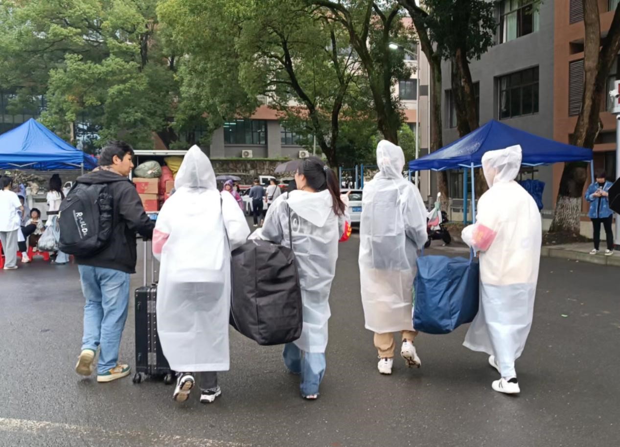 活动过程中,党员同志们身着雨衣,戴党徽、亮身份,戴袖章,扛责任。他们积极为新生提供引导、咨询、行李搬运等服务,帮助新生完成入学报到流程,带领新生了解熟悉校园环境,保证42名新生顺利报到、安心入住。此外,党员同志们还向新生介绍了支部相关情况,号召新生不断提高自身思想觉悟,积极向党组织靠拢。