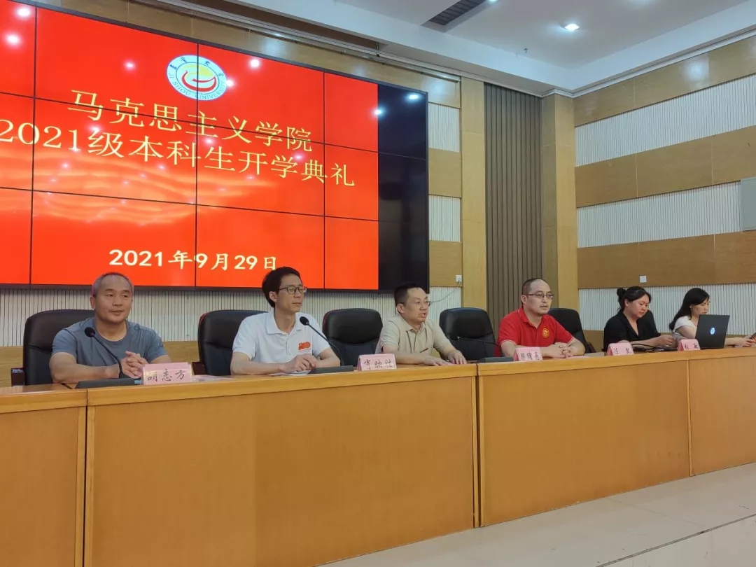 2021年9月29日下午15:00,学院在大田湾校区预科大楼609教室隆重举行开学典礼。典礼由院党委书记柴绪亮主持,院长肖映胜、辅导员陈凯、胡志方老师、罗卫红老师、张敏老师出席此次开学典礼,老生代表以及2021级全体新生参加。