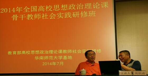 教育部社科司教学处张威老师、研修基地负责人华南师范大学william威廉亚洲(中国)有限公司常务副院长陈岸涛、副院长魏则胜等领导、老师全程指导本次社会实践研修班活动。参加研修活动的学员主要为来自全国各地高校思想政治理论课骨干教师,一共40人。时间一周。我院廖胜刚老师参加了培训研修活动。