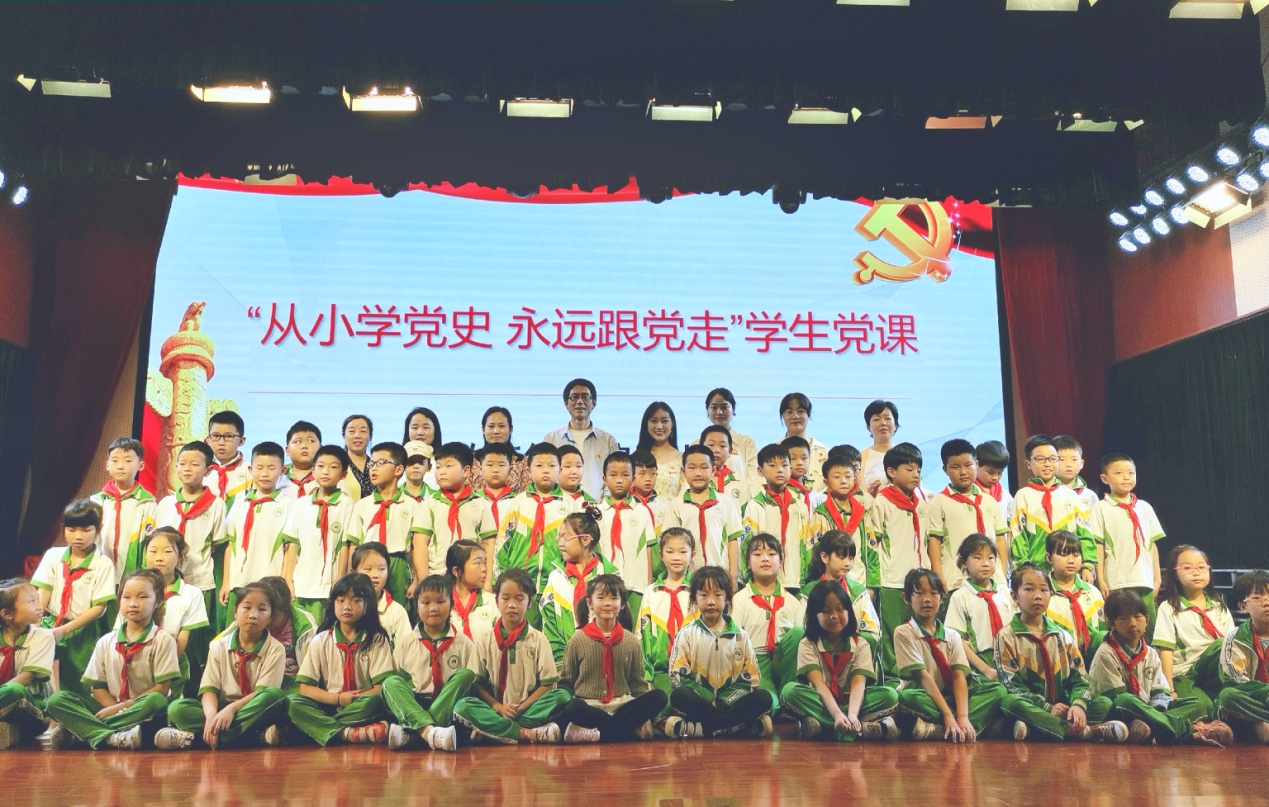 (图为学院党史宣讲成员与附小少先队员合影)