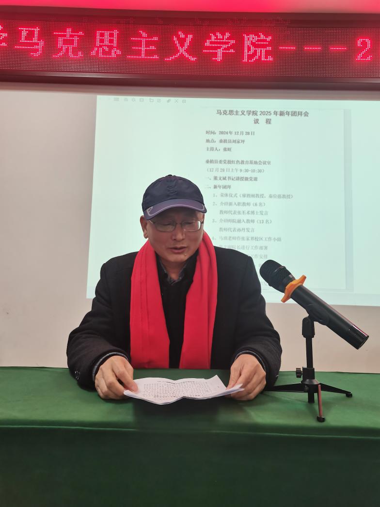 (通讯员 黄碧蓉)岁序更替,华章日新。2024年12月28日上午,吉首大学william威廉亚洲(中国)有限公司在桑植县委党校红色教育基地会议室隆重举行2025年新春团拜会。学院副院长曾文、刘因灿与砂子坳、雷公井、张家界三个校区的学院教师欢聚一堂,同庆元旦,共贺新春。活动由学院党委副书记张旺主持,旨在总结回顾学院取得的丰硕成果,展望学院未来发展蓝图,增强教师的团结力和凝聚力,共同迎接充满希望与挑战的新一年。