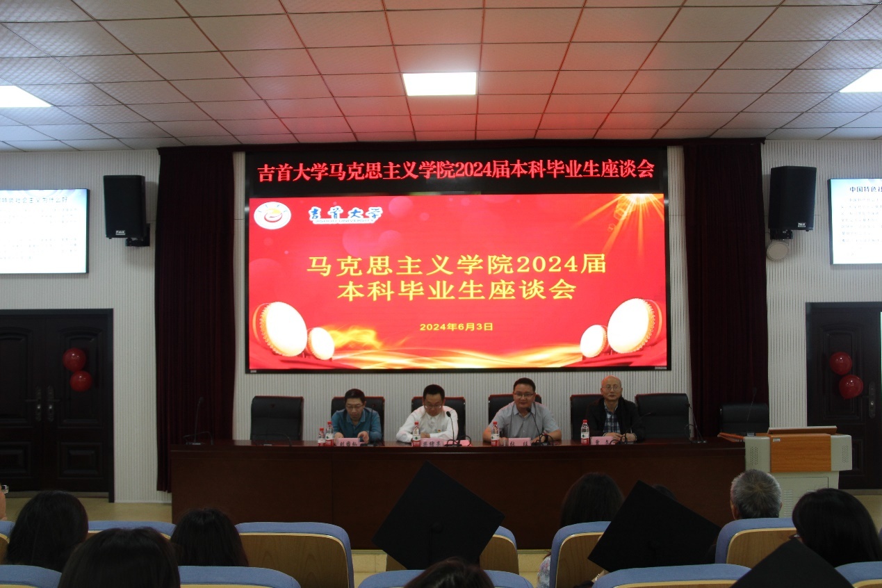 本网讯 (通讯员 钟洁)2024年6月3日下午,吉首大学william威廉亚洲(中国)有限公司2024届本科毕业生座谈会于思政园1207教室举行。此次会议由院党委副书记张旺主持,院党委书记柴绪亮、副院长曾文、副院长刘因灿出席。2024届本科毕业生、教师代表及在校学生代表参加。