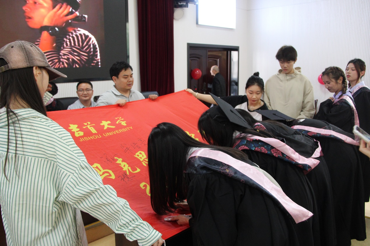 座谈会还举行了回收班旗仪式。全体毕业生与参会老师在班旗上签名留念,共同铭记这段难忘的时光。这一仪式不仅是对毕业生们大学生活的回顾和总结,更是对他们未来人生道路的一次激励和鞭策。
