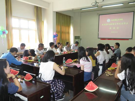 会议进入第三项,由2015级硕士研究生代表宗高峰和2014级硕士研究生代表颜福维发言,代表师弟师妹们祝福顺利毕业的师兄师姐们前程似锦,在自己的人生之路上越走越远。伴随着依依不舍,各位同学与老师们都在各自交流着,老师们纷纷表示,毕业是好事,有空可以常回来看看。