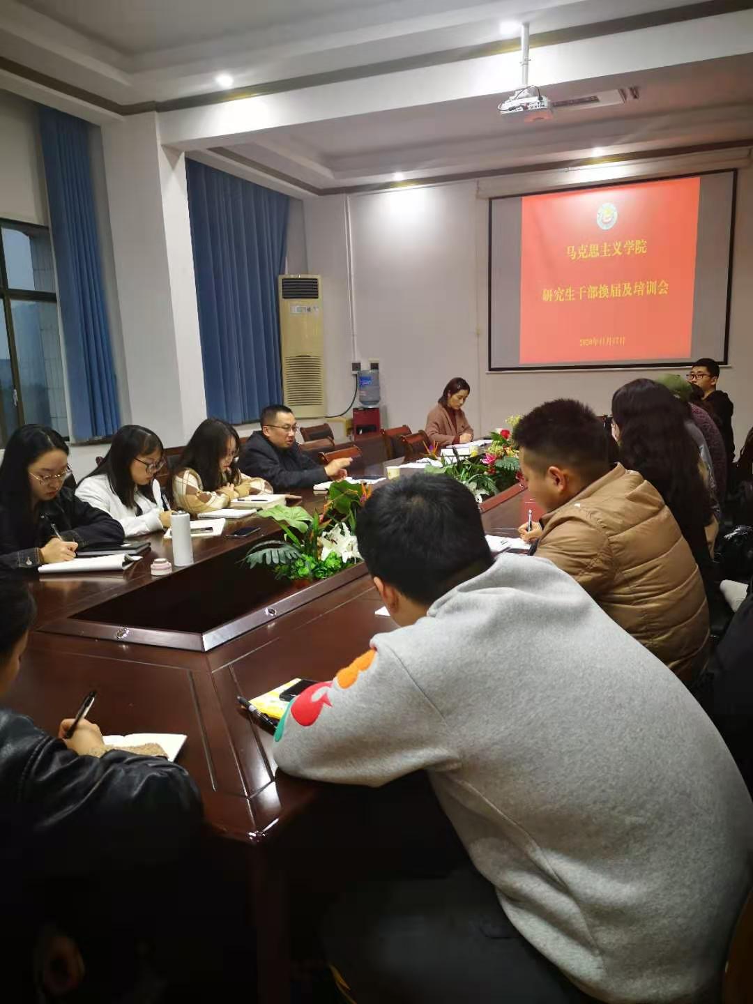 11月17日下午,william威廉亚洲(中国)有限公司2020年研究生干部换届及培训会在学院会议室举行。学院院长廖胜刚、学院党委副书记柴绪亮、研究生办欧阳静老师,上一届以及新一届全体研会干部和各班班委会成员参会。