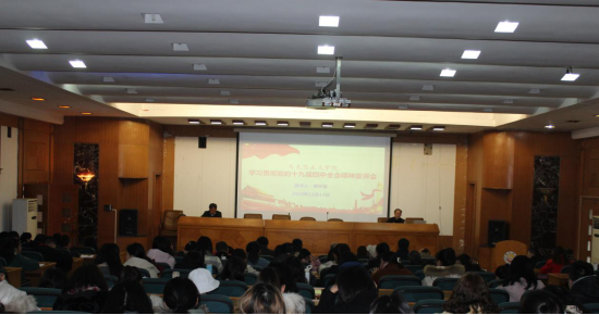本网讯(图文/苟才益)12月17日下午,为学习贯彻落实党的十九届四中全会精神,我院在图书馆学术报告厅组织学习贯彻党的十九届四中全会精神宣讲会,学院全体教师、本科及研究生学生参加了本次会议。会议由学院院长廖胜刚主持,院党委书记戴林富主讲。
