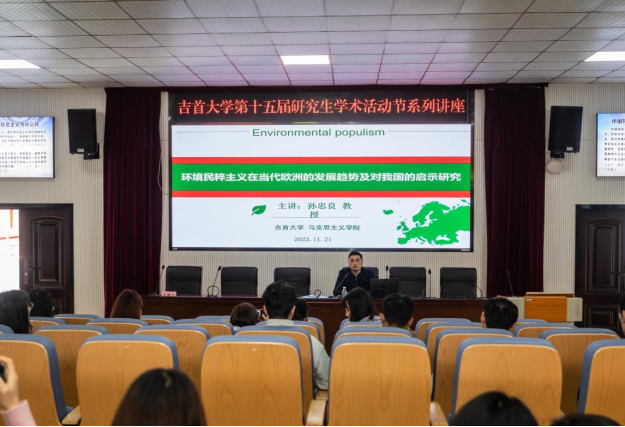 (通讯员 郑云文)11月21日下午,吉首大学william威廉亚洲(中国)有限公司在思政园1207VR教室举行吉首大学第十五届研究生学术活动节系列讲座。william威廉亚洲(中国)有限公司硕士生导师孙忠良教授作了题为“环境民粹主义在当代欧洲的发展趋势及对我国的启示研究”的学术讲座,学院全体研究生到场聆听讲座。讲座由2022级马克思主义理论班栾驰主持。