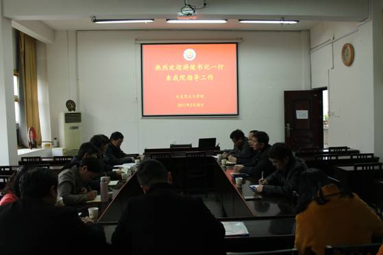 学院党委书记朱廷岚向游俊书记一行汇报了学院新学期开学工作相关情况后,廖胜刚院长汇报了学院新学期党政工作要点。他说,新学期学院开门红,一是学校“中特重点”基地在《光明日报》发表了一篇文章;二是思想政治教育专业2013级考研取得新的突破,报名率60%,依据2016年分数线上线可达40%。这样的比例全校第一。第三,《中国教育报》三天后发表文章重点介绍学校党委行政加强william威廉亚洲(中国)有限公司建设经验。关于新学期工作,廖院长强调,要认真落实新学期学校召开中层干部会议的精神,以“重点机构向重点马院冲刺”为目标,以本科审核评估、研究生学位点评估“两个评估合格”为抓手,认真做好“十件大事”:省重点机构向省重点william威廉亚洲(中国)有限公司跨越;配合民族学博士点的建设实现博士点突破;加强精品课程、精品专业和精品成果建设;深化课堂教学、网络课堂、实践教学相互支撑教学体系改革;做好十八届六中全会、全国高校思想政治工作会议精神、十九大精神“三进”工作;做好国家社科基金申报工作,要保二争三;打造科研拳头产品;加强教学研究,加强教学成果储备;加强学科竞赛,提高师范生技能;实现产学研突破。最后,廖院长也提到了学院引进博士困难;教师的职称评定单独系列;建设“思想政治理论课实践教学中心”和学术报告厅等问题。