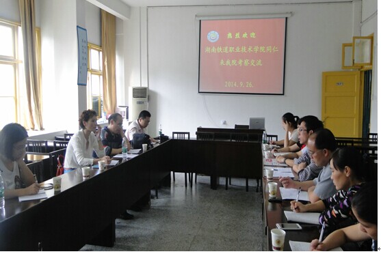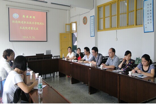 本网讯(娟萍)9月26日,湖南铁道职业技术学院思想政治理论课教学科研部田文艳部长一行4人来我院考察交流。我院分管本科教学工作的肖映胜副院长、院长助理孙忠良副教授、各教研室主任和行政人员在学院会议室与到访的铁道职业技术学院思想政治理论课教学科研部同仁围绕思政理论课教学、师资培养和课题研究等方面进行了深入的探讨和交流。