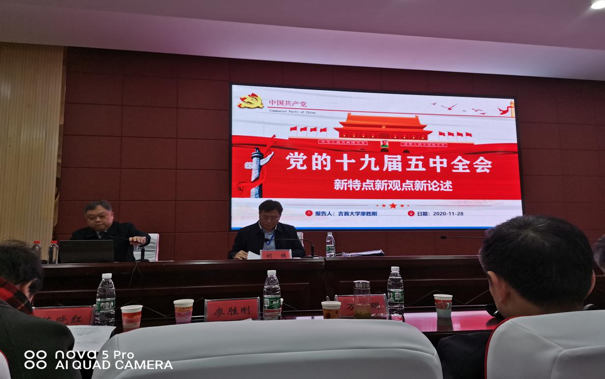 此次研讨会分为开幕式、合影留恋、学术研讨和论文颁奖这四个阶段。在学术研讨阶段,廖胜刚教授做了“党的十九届五中全会新特点新观点新论述”发言,分别论述了党的十九届五中全会的新特点、新表述和开启全面建设社会主义现代化国家新征程。廖胜刚教授讲述了十九届五中全会召开的背景,精炼总结了十九届五中全会的六个新特点,深度提炼了十五个新表述,还高度概括了十五届五中全会的主要内容,并指出了我国处于新的历史方位,进入了新征程。