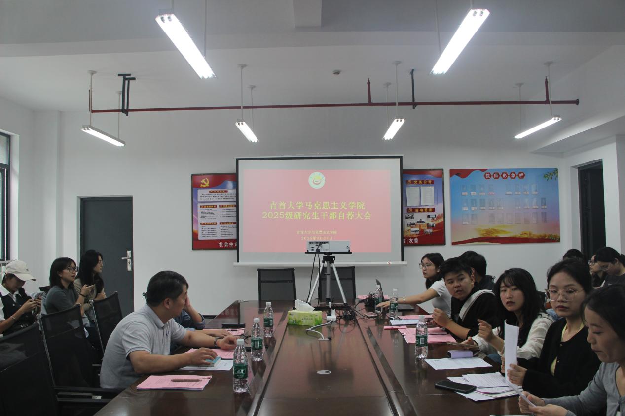 (通讯员 叶婧)9月24日下午,吉首大学william威廉亚洲(中国)有限公司2025级研究生干部自荐大会在身正楼203会议室召开。学院党委书记廖浩、副院长刘因灿、研究生秘书欧阳静,以及学院研究生分会干部代表、2025级全体研究生共同参会,会议由学院研究生会主席团成员谷幸主持。